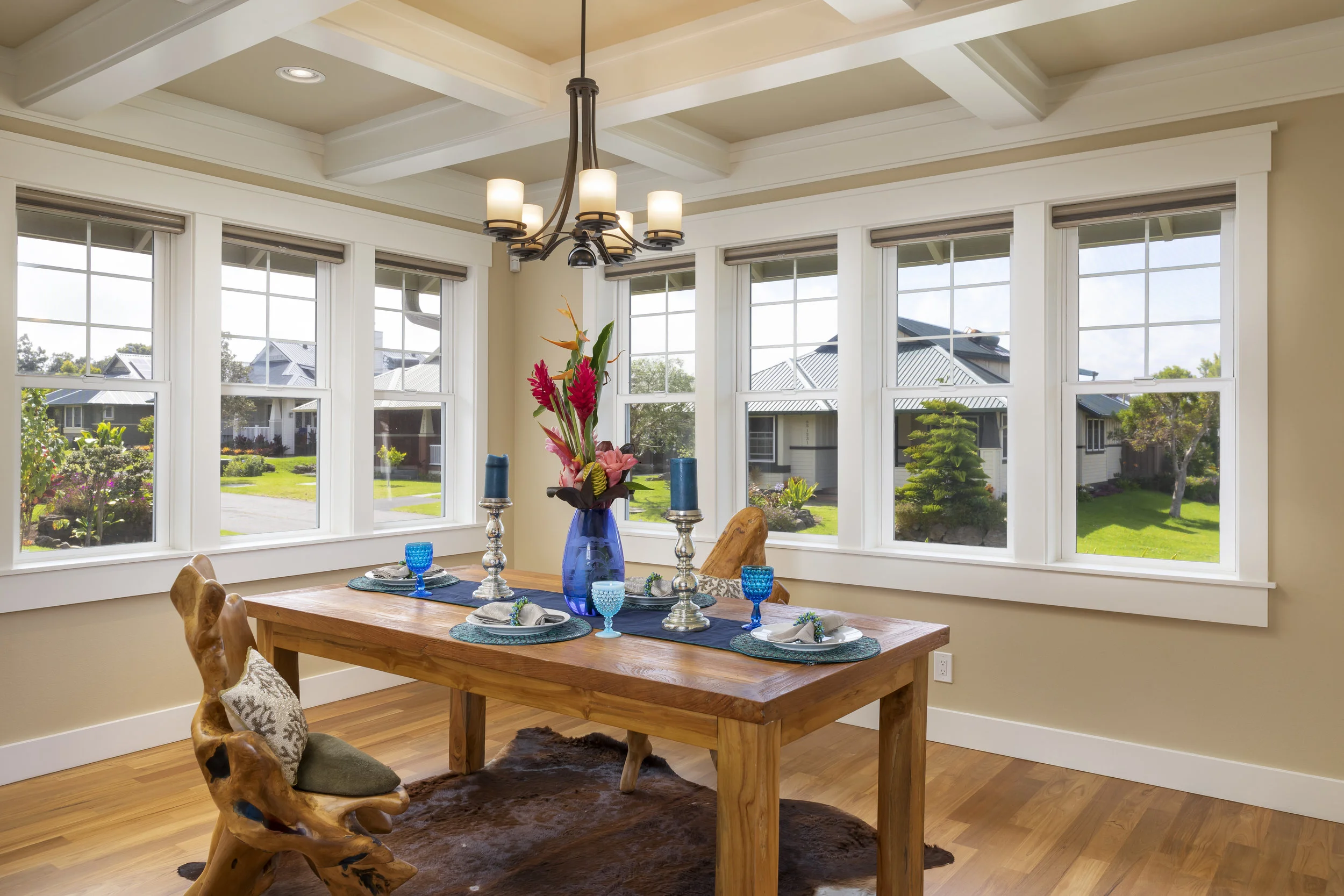 Just a few of the MANY features: Bright & Cheery Dining Room with Mauna Kea Views, box beam ceilings, & built in glass display cabinetry Great room. A thoughtful design with open Floor plan with a great room with Soaring Ceilings, upgraded smooth walls with custom Ralph Lauren Sueded paint for subtle ambiance, & gas fireplace with custom Stonework.